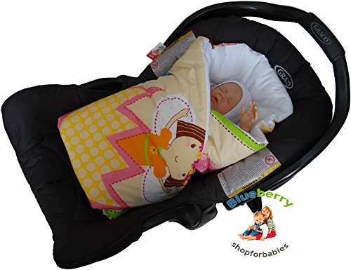 - Shell: 100% Cotton, Lining: 100% Cotton, Filling: Polyester, - VERY Cosy and COMFORTABLE, Designed for CAR SEAT (3 point harness) and CRIB