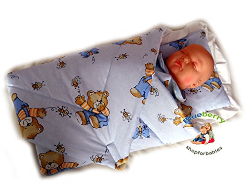 BlueberryShop Classic with Pillow Swaddle Wrap Blanket Sleeping Bag for Newborn baby shower GIFT 100% Cotton 0-3m ( 0-3m ) ( 78 x 78 cm ) Blue Bear