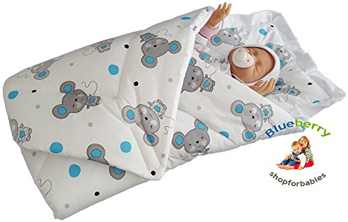 BlueberryShop Classic with Pillow Swaddle Wrap Blanket Sleeping Bag for Newborn baby shower GIFT 100% Cotton 0-3m ( 0-3m ) ( 78 x 78 cm ) White Mouse