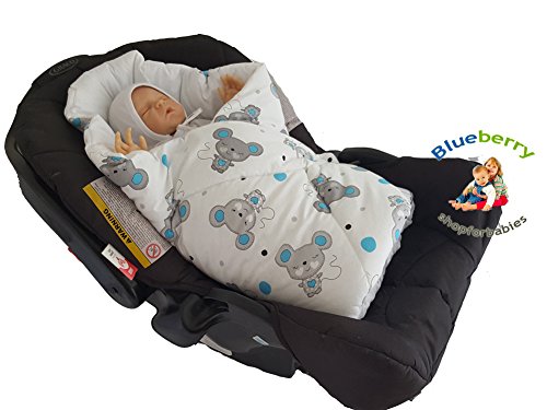 BlueberryShop Luxury Classic for CAR SEAT Swaddle Wrap Blanket Sleeping Bag for Newborn baby shower GIFT Cotton 0-3m ( 0-3m ) ( 78 x 78 cm ) White Mouse