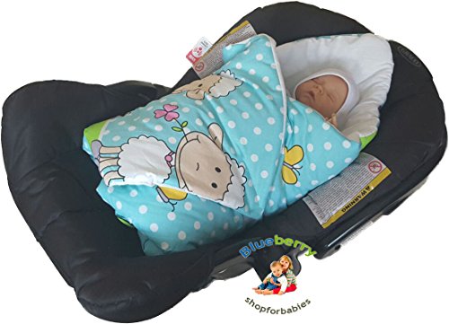 BlueberryShop Luxury Classic for CAR SEAT Swaddle Wrap Blanket Sleeping Bag for Newborn baby shower GIFT Cotton 0-3m ( 0-3m ) ( 78 x 78 cm ) Blue Sheep by Blueberry Shop for Babies