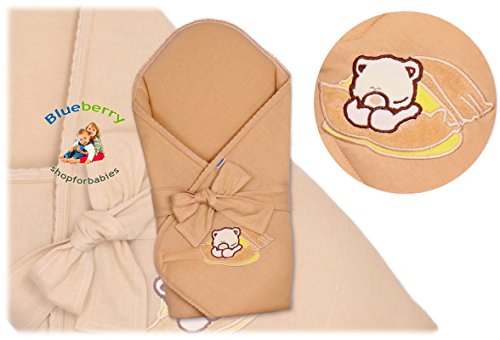 BlueberryShop Jersey Embroidered Swaddle Blanket Wrap for Newborn Baby Stiffened/Hard Back (Removable Sponge Insert) ( 0-3m ) ( 78 x 78 cm ) Brown