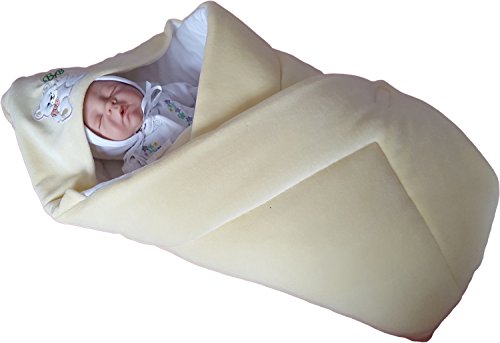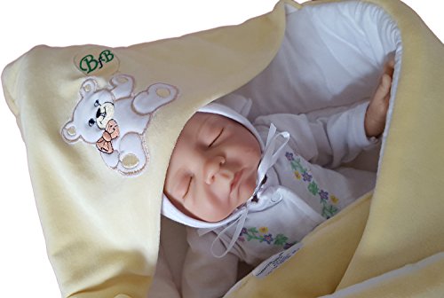 BlueberryShop Signature Hooded Velour Swaddle Wrap Blanket Sleeping Bag for Newborn, baby shower GIFT Cotton, 0-3m ( 0-3m ) ( 78 x 78 cm ) Yellow Teddy