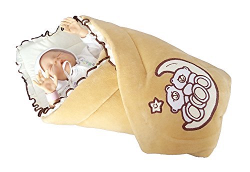 BlueberryShop Embroidered Velour Swaddle Wrap Blanket Sleeping Bag for Newborn, baby shower GIFT 100% Cotton, 0-3m ( 0-3m ) ( 78 x 78 cm ) Brown