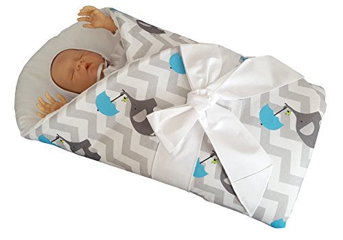 Luxury blanket & swaddles are made from 100% cotton - exclusive verlour that has been thoroughly tested to Oko-Tex 100 standards, ensuring the safety of your baby's delicate skin at all times. These baby swaddle blankets are specially designed to keep your baby snug and warm, emulating the cosy environment of the womb. The result is a more restful sleep for both baby and parents, and allows mother and father to pick up their child without fear of waking him/her. These particular swaddles have a firm, removable sponge back to allow easy and safe handling whilst your baby is swaddled. Swaddles are specially designed to make washing them a breeze. No matter how many times they are washed, the colours won't fade. And because they are made from the highest quality natural textiles, not with harsh chemicals, you can rest assured that the swaddles are safe and won't harm your baby. A snuggled, cosy night's sleep is what newborn swaddles deliver, and they certainly don't disappoint. Specially designed from every step of the production process, even from choosing milder, quiet colours that won't cause anxiety or disturb your little one's sleep, from the accredited production process that ensures the safety of your baby, snuggle wraps are certainly an ideal present for new parents. Rest assured that all of our swaddles are brand new, unused and made to accredited standards to ensure the safety of your child's soft, delicate skin.
