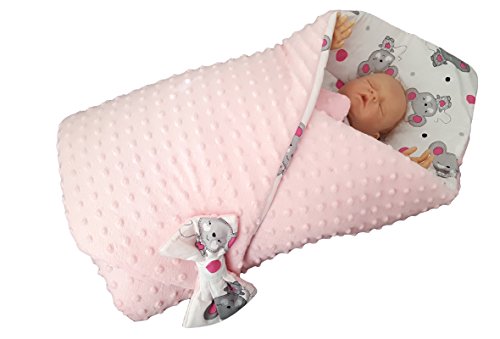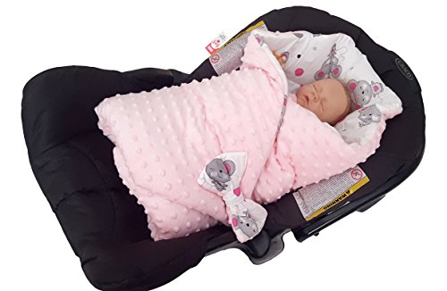 BlueberryShop Minky Reversible for CAR SEAT Swaddle Wrap Blanket Sleeping Bag for Newborn, baby shower GIFT ( 0-3m ) ( 78 x 78 cm ) Pink