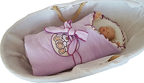 BlueberryShop Velour Embroidered Swaddle Blanket Wrap for Newborn Baby Stiffened / Hard Back (Removable Sponge Insert) ( 0-3m ) ( 78 x 78 cm ) Purple