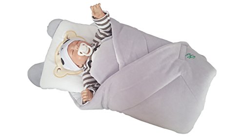 BlueberryShop Warm Velour with Pillow Swaddle Wrap Blanket Sleeping Bag for Newborn baby shower GIFT Cotton 0-3m ( 0-3m ) ( 78 x 78 cm ) Grey
