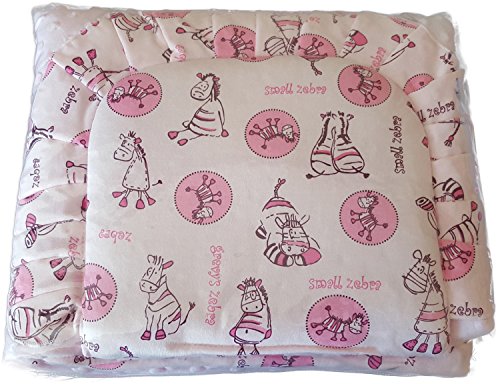 BlueberryShop Reversible Minky Cotton Pram Crib Moses 2pc Set Quilt & Pillow (29.5" x 25.5") ( 0-12 m ) ( 75 x 65 cm ) Pink