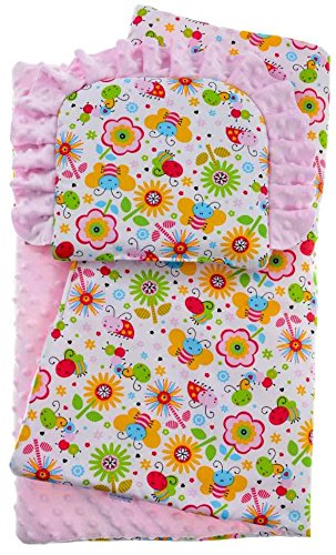 BlueberryShop Reversible Minky Cotton Pram Crib Moses 2pc Set Quilt & Pillow (29.5" x 25.5") ( 0-12 m ) ( 75 x 65 cm ) Pink Lea