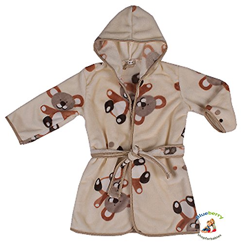 Beige 6 - 7 Yrs BlueberryShop Printed Luxurious Hooded Soft Warm and Fluffy Velour Bathrobe Robe Dressing Gowns 1-7 Yrs