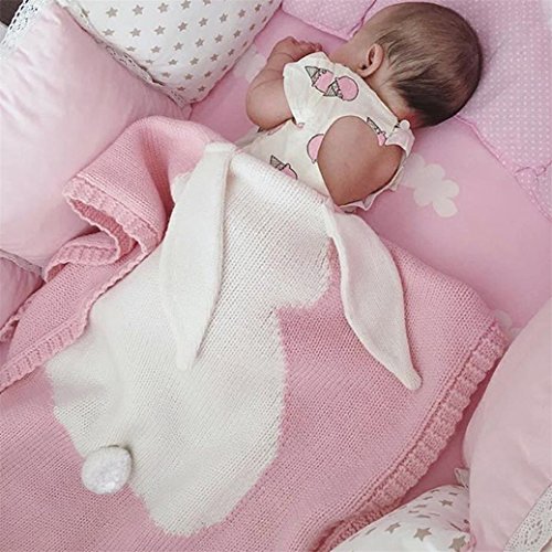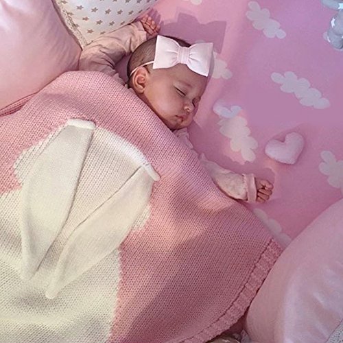 Bluelansベビーキッズ幼児用Cartoon Rabbitソファースローベッドニットブランケットカバーギフト 105cm x 75cm/41.34" x 29.53" ピンク X91138474YG045247