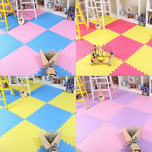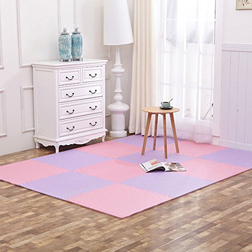 (30cm x 30cm x 1cm/11.81" x 11.81" x 0.39", Pink) - Bluelans 9Pcs Kids Foam Floor Play Mat Game Puzzle Environmental Protection Mats Yoga