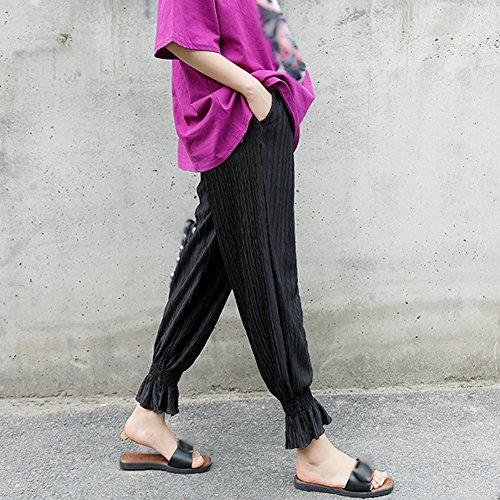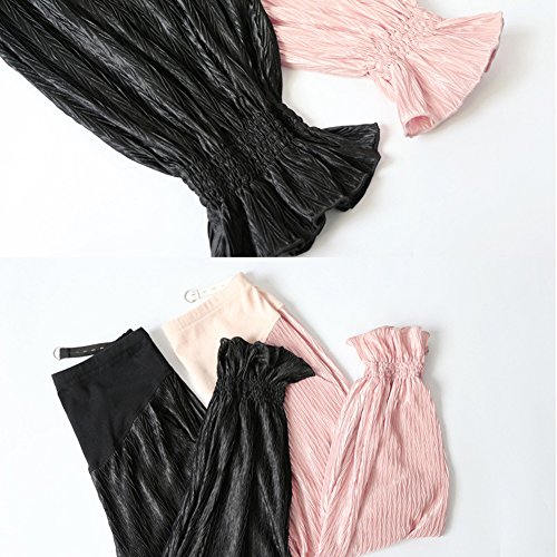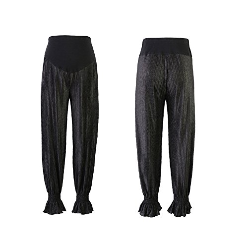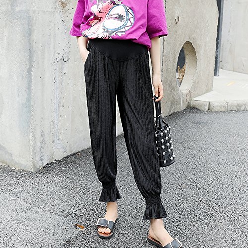 マタニティスキニー ボトムス 産前産後 妊婦 シフォン ロングパンツ リラパン 夏 涼しい イージーパンツ かわいい おしゃれ レディース ウエスト調節機能 (ブラック 黒, L)