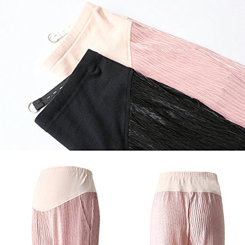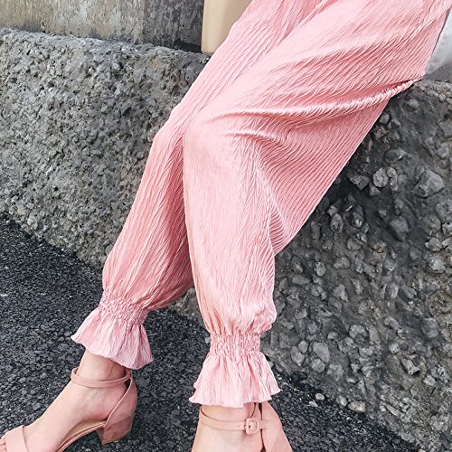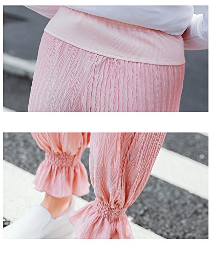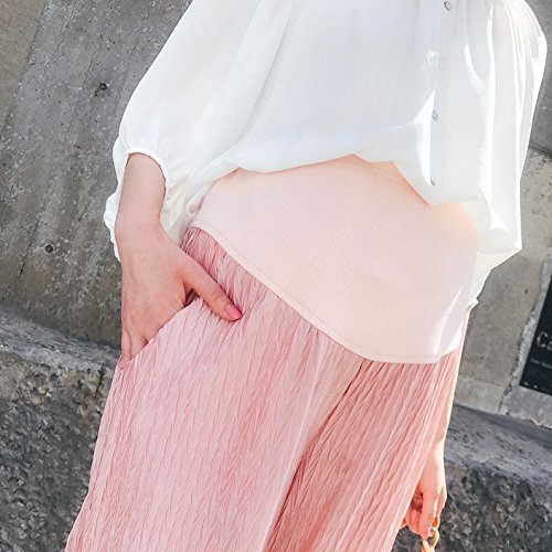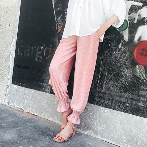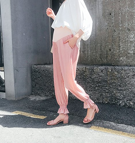 マタニティスキニー ボトムス 産前産後 妊婦 シフォン ロングパンツ リラパン 夏 涼しい イージーパンツ かわいい おしゃれ レディース ウエスト調節機能 (ピンク 粉, L)