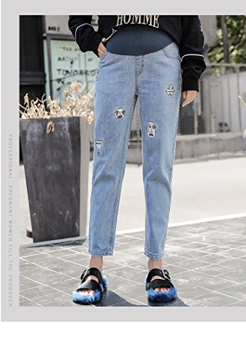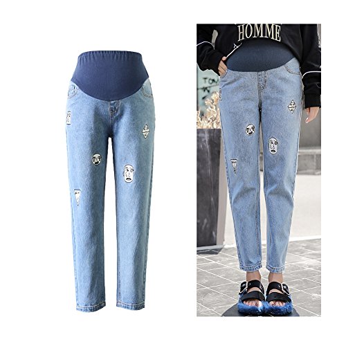 妊婦ジーンズ ズボン 妊婦服 マタニティウェア デニム 妊娠中 産前産後 パンツ レディース 春 夏 秋 冬 ウエスト調節機能 ボトムス (M)