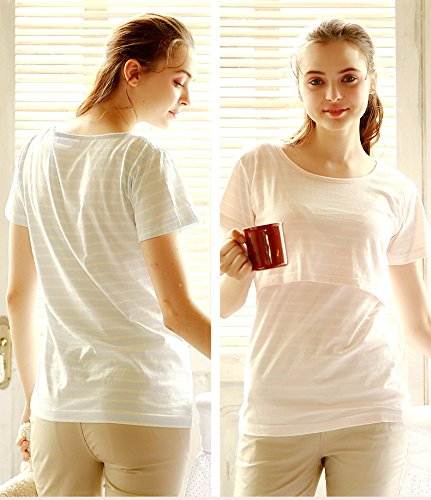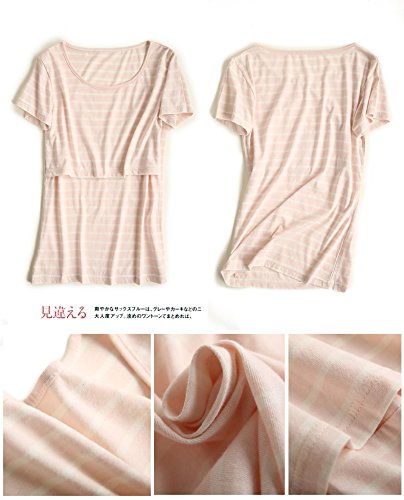 授乳服 トップス 授乳Tシャツ 夏 半袖 マタニティトップス 産後ウェア 前開き 授乳口付き 妊婦服 出産準備 産前 妊娠中 (ピンク 粉, L)