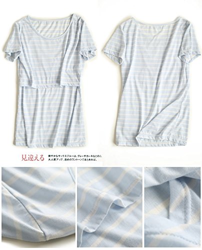 授乳服 トップス 授乳Tシャツ 夏 半袖 マタニティトップス 産後ウェア 前開き 授乳口付き 妊婦服 出産準備 産前 妊娠中 (ブルー 蓝, M)