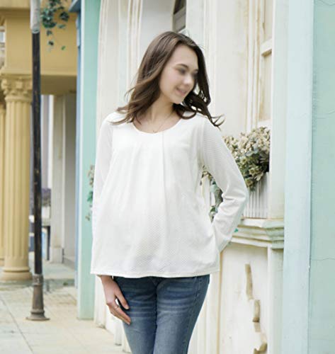 BoFUN 授乳服 トップス マタニティトップス 産後ウェア 秋冬 長袖 妊婦服 授乳Tシャツ 授乳口 付き 出産準備 産前産後 妊娠中 レディース (ホワイト 白, M)