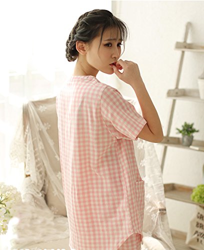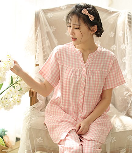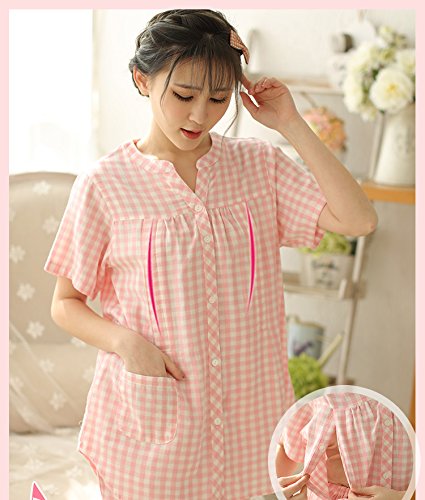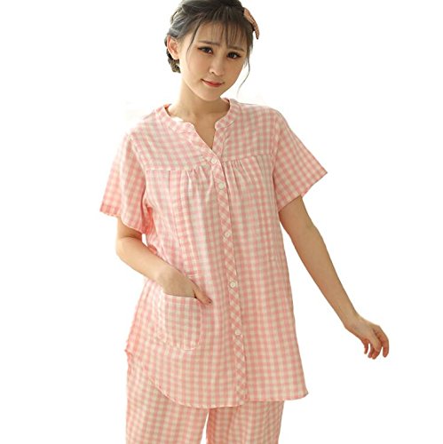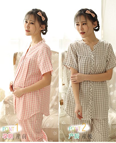 マタニティ パジャマ 夏 授乳服 授乳パジャマ 授乳口付き 前開き 妊婦服 半袖入院 出産準備 産前産後 マタニティウェア 妊娠中 ウエスト調節機能 ルームウェア (ピンク 粉, L)