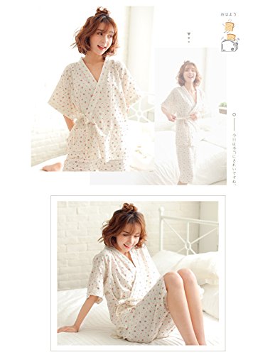 BoFUNマタニティ パジャマ 夏 授乳服 授乳パジャマ 前開き 妊婦服 半袖五分丈ズボン 入院 出産準備 産前産後 マタニティウェア 妊娠中 ウエスト調節機能 ルームウェア (ベージュ 米, M)