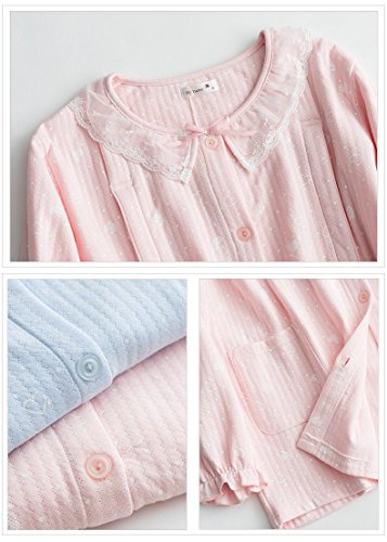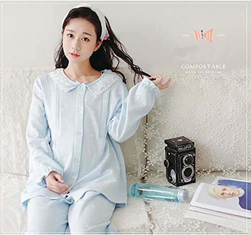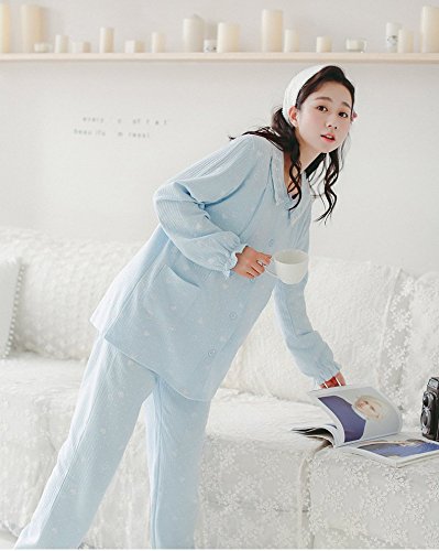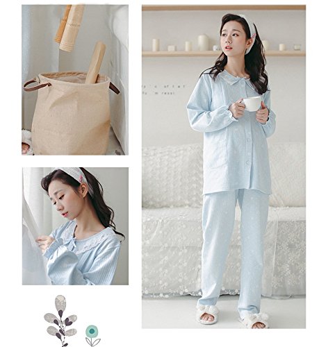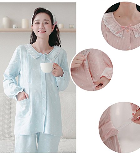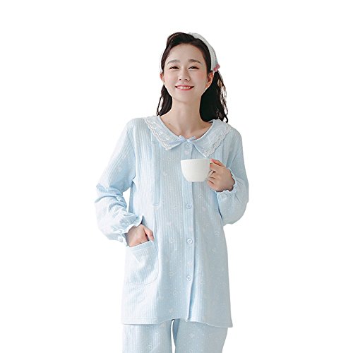 BoFUN 授乳 パジャマ マタニティ パジャマ 秋冬 長袖 授乳服 授乳口付き 前開き マタニティウェア 妊婦服 産前産後 入院 出産準備 レディース ルームウェア(ブルー 蓝, L)