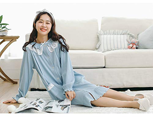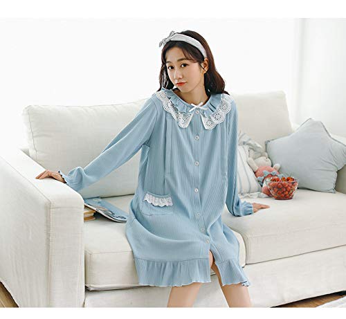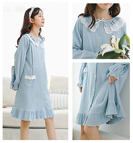 BoFUN マタニティ パジャマ ワンピース 授乳服 秋 長袖 前開き 授乳口付 マタニティウェア 産前産後 妊婦服 ルームウェア (ブルー 蓝 ワンピース, M)