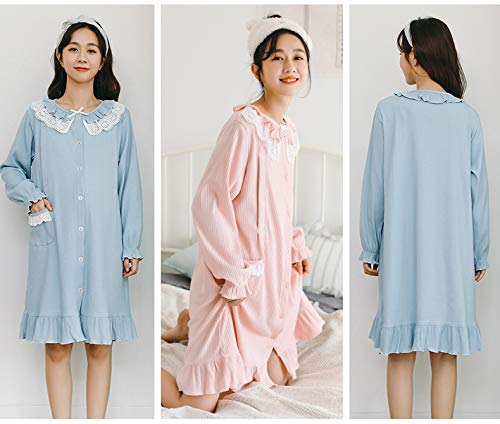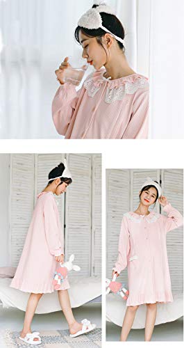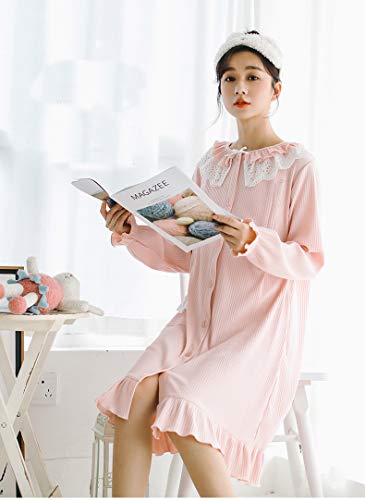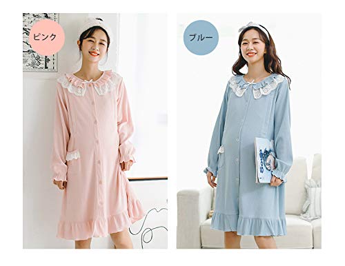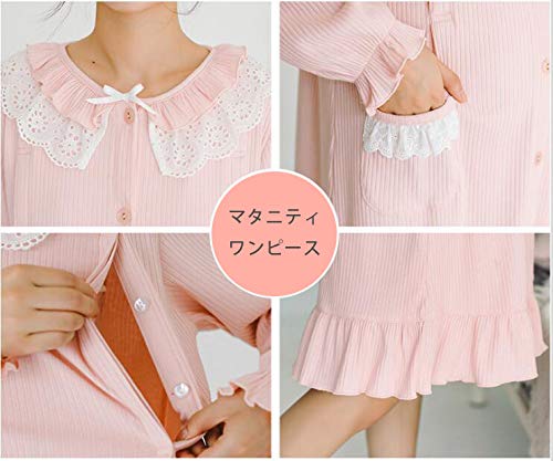 BoFUN マタニティ パジャマ ワンピース 授乳服 秋 長袖 前開き 授乳口付 マタニティウェア 産前産後 妊婦服 ルームウェア (ピンク 粉 ワンピース, M)