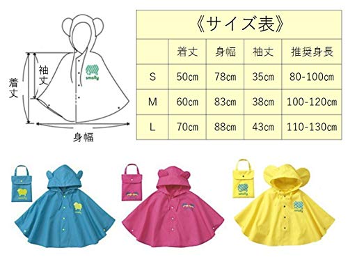 [ボアソルチ] キッズ レインコート ポンチョ 子供用 雨具 カッパ レインウェア レイングッズ (イエロー, S)