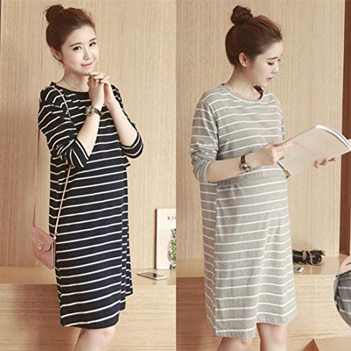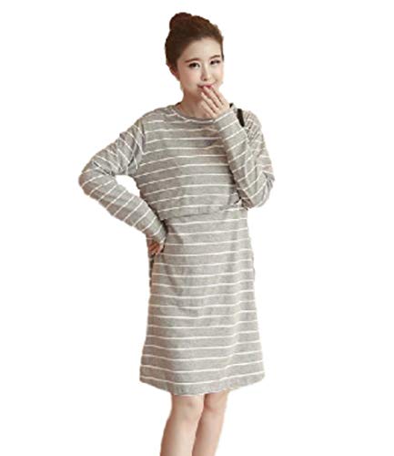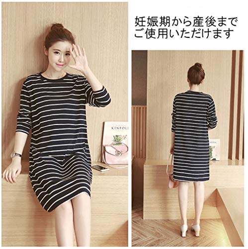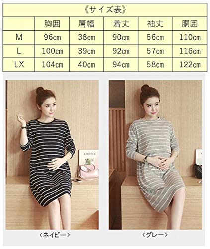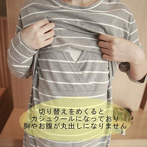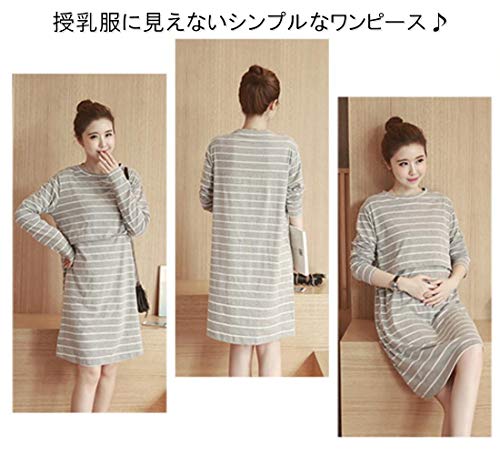 [ボアソルチ] 授乳服 前開き 授乳口付き ボーダー ワンピース 長袖 マタニティ ウエア (グレー, L)