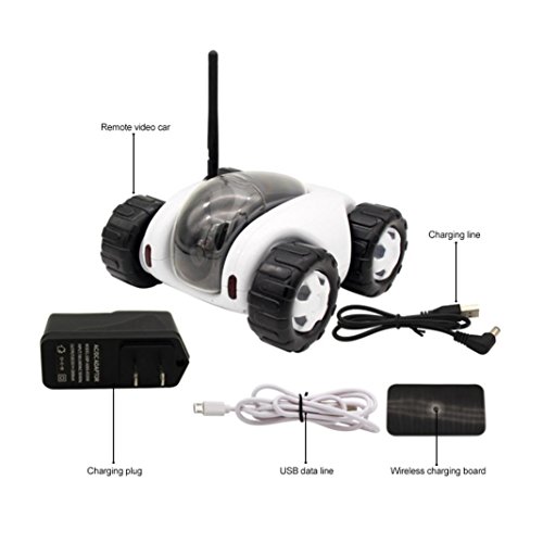 Wireless charging: equipped with wireless charger, just connect the power, the car charging can be wirelessly. Taking picture:full hd 1.3 million pixels,1280*960P camera,H.264 video aompression format allow you photographing or recording streamy. Remote Contral : You can control the tank through your smart phone forward,backup and turn around and record video and take photos Baby(PET )Monitor :when you away from home and want to keep an eye on your baby or pet ,even talk through. Operation System:IPhone,IPad, IPod and Great Majority of Android Smart Phone and Smart Tablet