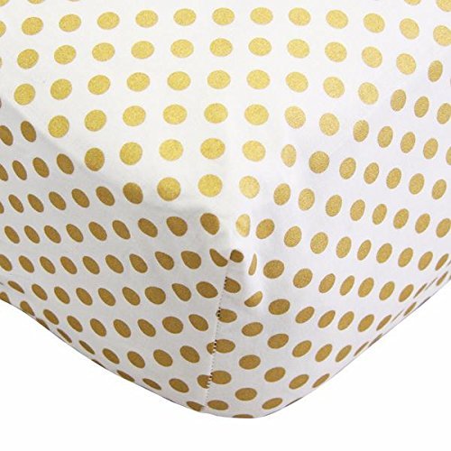 100% Cotton gold fitted crib sheet;Fits standard crib mattresses or daybeds: 52x28+ 9 deep;Elastic all around edge for a snug and secure fit;Care Instructions: Machine Wash - Gentle Cycle Tumble Dry Low Warm Iron as Needed;Metallic Glitz gold dots adds glamour to your baby's nursery - boy or girl.