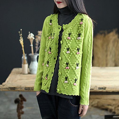 (ボラ-キキ) Bole-kk ベーシック ニット カーディガン レディース 長袖 ニットカーディガン オフィス ベーシック セーターボレロ風 (グリーン)