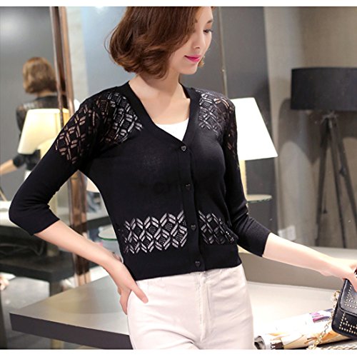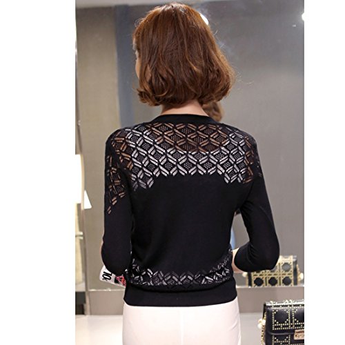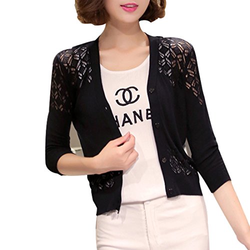 (ボラ-キキ) Bole-kk レディーズ ニットカーディガン 長袖 ベーシック Vネック 羽織り カーディガン ボレロ レース 薄手 冷房対策 UVカット 春夏秋 (M, 黒)