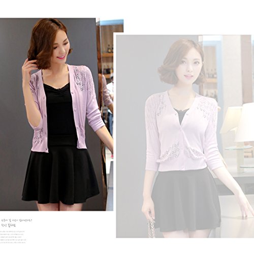 (ボラ-キキ) Bole-kk レディーズ ニットカーディガン 長袖 ベーシック Vネック 羽織り カーディガン ボレロ レース 薄手 冷房対策 UVカット 春夏秋 (L, パープル)