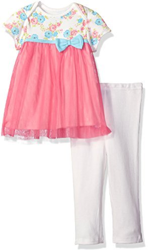 Bon Bebe Baby Girls' 2 Piece Lap Shoulder Tulle Dress and Legging Set Coral With Light Blue Bow 12 Months [並行輸入品]