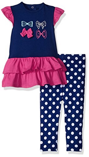 BON BEBE Baby Girls' 2 Piece Short Sleeve Dress and Legging Set Blue Polkadots/Bows 24 Months [並行輸入品]