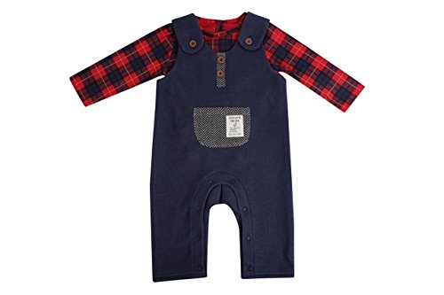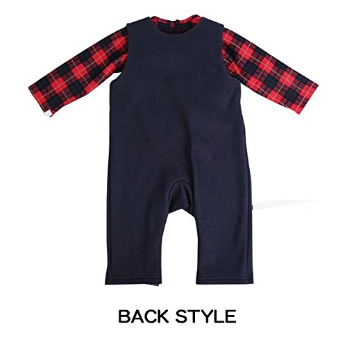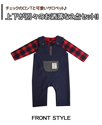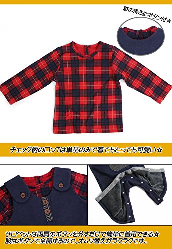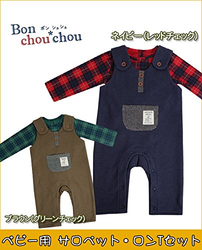 (ボンシュシュ)Bon chou chou チェック柄のロンTとサロペットの2点セット【p2814】70cm ネイビー(レッドチェック)