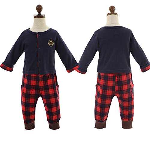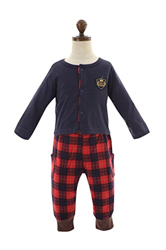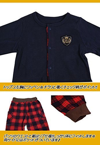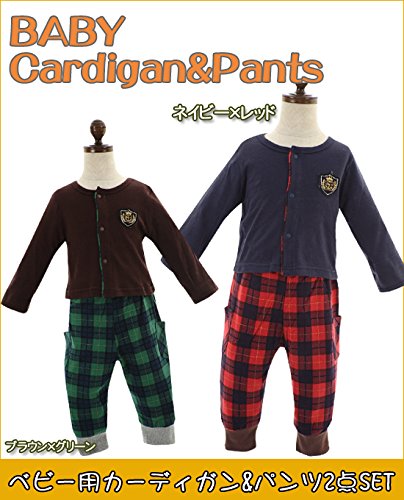 (ボンシュシュ)Bon chou chou カーディガン&パンツ2点セット【p3121】80cm ネイビー×レッド