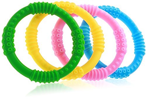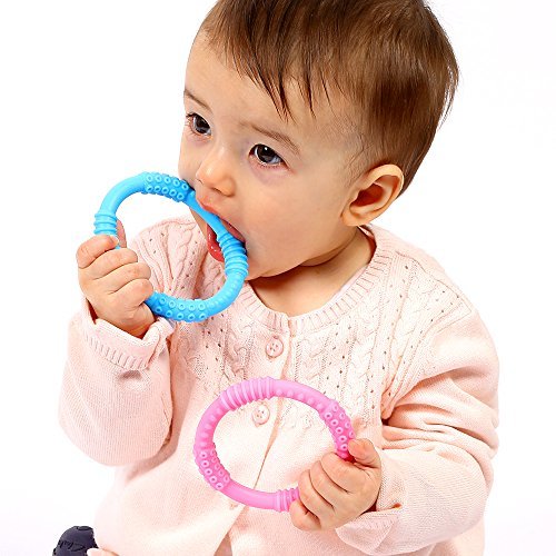 ?Now find your little one crawling around, and let them feast their eyes on their teeth's new best friends. Sit back, make some tea, and relax!?Marvel at the way they will sit their for hours biting & gnawing away at the Teether Rings. Most baby's choose their favorite color within 5 minutes!