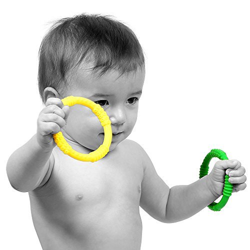 ?When that small pretty brown box from Amazon arrives at your door, rip it open the first chance you get. Take out your Bonbino Baby Teether Rings and admire the dazzling colours. You have in your hands a set of the finest custom designed BPA Free, 100% Silicone Baby Teether Rings.