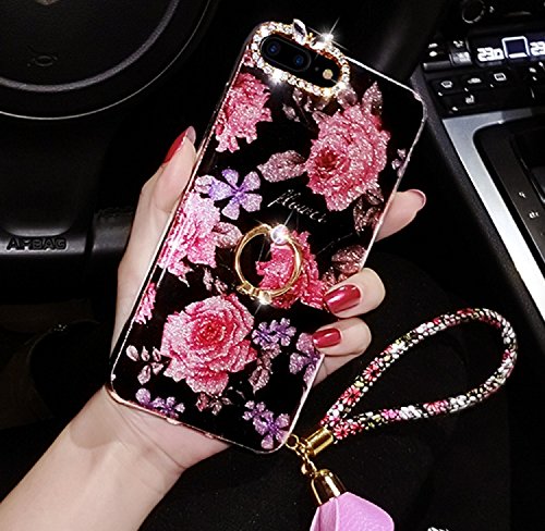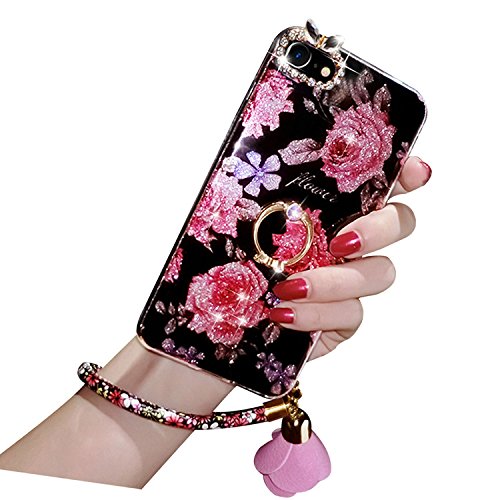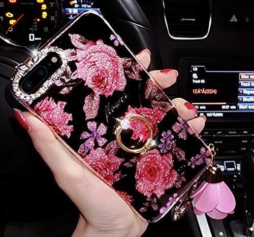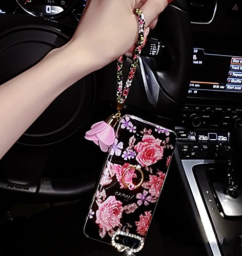 iPhone 6 6S ケース Bonice iPhone 6 6S携帯ケース 4.7インチ 高級 iphone用 指輪型 リングスタンド 保護ケース ピカピカ ダイヤモンド カバー キラキラ ゴムカバー 美しい かわいい プラスチック 花 リング 横置き スタンド機能 落下防止専用ケース 薔薇の花