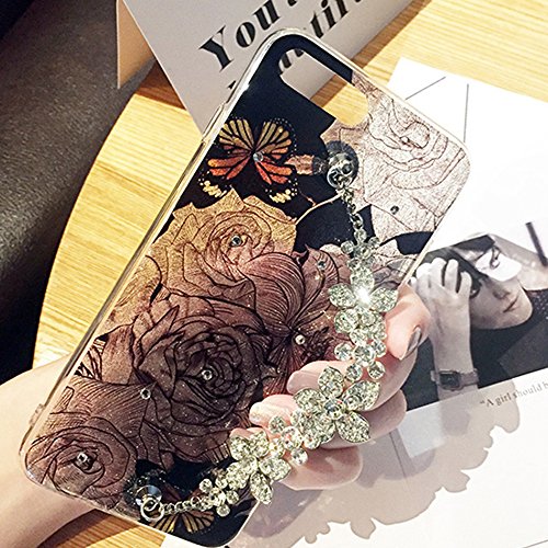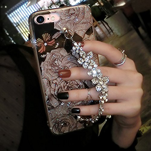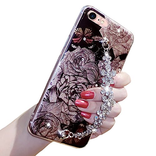 iPhone 6 携帯ケース 6s カバー 4.7インチ ケース,Bonice 携帯ケース ダイヤモンド ゴージャス水晶 プラスチック 高級カバー キラキラ おしゃれ かわいい ブレスレット 保護ケース 落下防止 薔薇の花