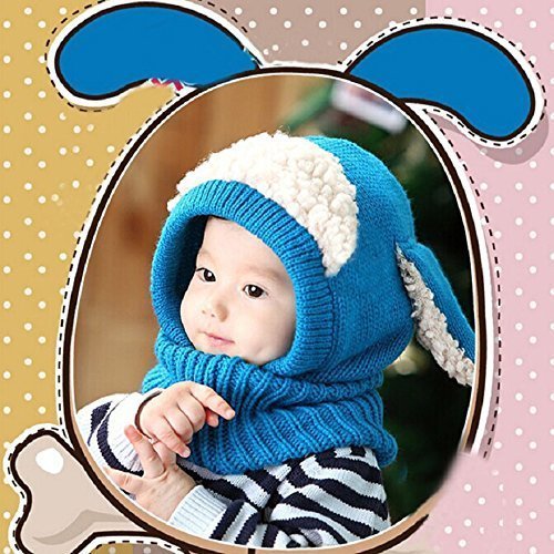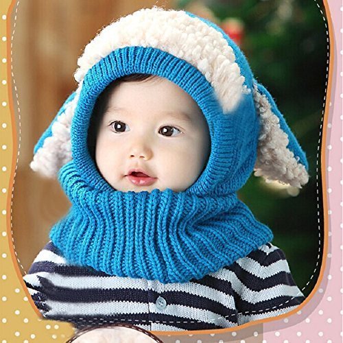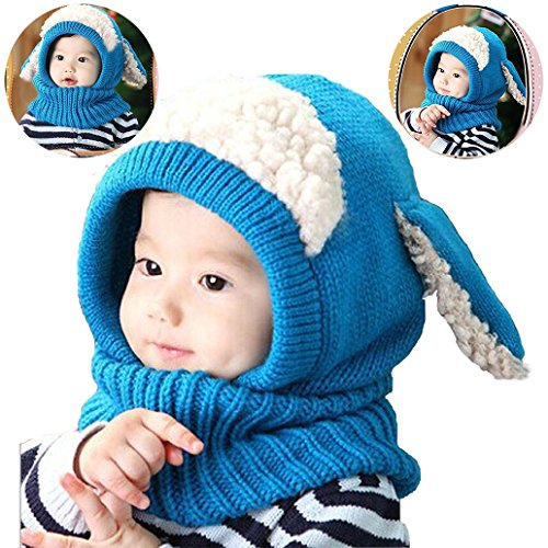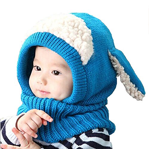 Bonice ニット帽子 ベビー 秋冬 可愛い アニマル 耳付き マフラー 男女兼用 子供 防寒 防風 厚い 暖かい お出かけ 寒さ対策 キッズ帽子 ブルー