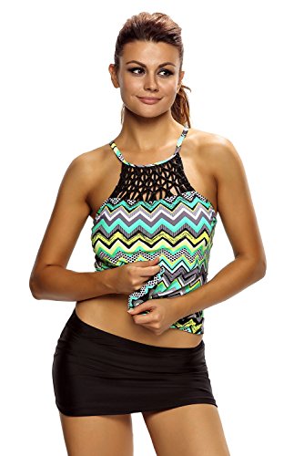 マルチカラージグザグプリントMacrame High Neck Swim Top US サイズ: XL