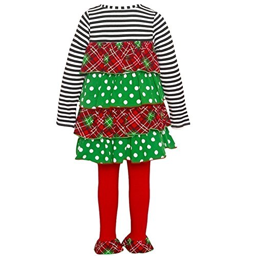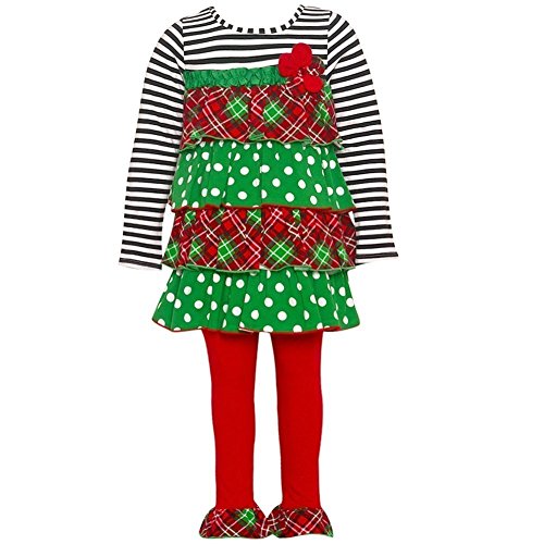 A Joyful Christmas Outfitボニージーンからあなたの甘い少女です。緑でレッドカラーの組み合わせ、午後にはクリスマスシーズンのためのすべてのセット。セットには長袖階層型チュニックチェック、水玉のフリル、と上部のストライプでパーツは含まれていません。一致したレッドレギンスは完璧な設定されている場合があります。