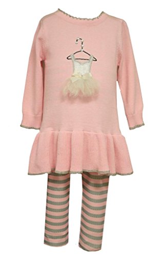 お嬢様はBonnie Jeanで設定このチュチュトップやレギンスでカッコよく見えます。ピンクのチュチュセーターのドレスは、組み込みのスカートと、グレーのトリミング。特徴は、バレリーナチュチュのアップリケが付いたチュールとリボン。おそろいのニットレギンスにはピンクとグレーのストライプ。衣装にぴったり女の子を見てよ。