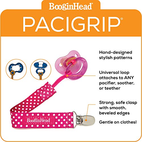 BooginHead (ブーギンヘッド) Paci Grip おしゃぶりホルダー パーチー グリップ Pink Polka Dot ピンクポルカドット