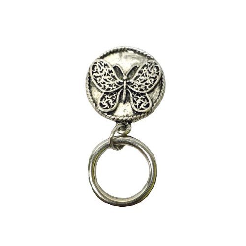 ひらひら、レースの蝶がそっと成形ロープエッジにアンティーク調のシルバーディスクに浮かびます。