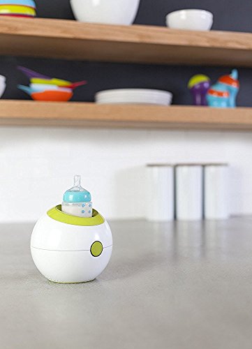 Greetings bottles, take me to your kitchen. This sphere-shaped bottle warmer is out of this world. It steam heats bottles and baby food efficiently and effectively. The warming chamber fits most bottle types and includes a basket for baby food jars, a graduated tube for measuring water to be steamed and an integrated auto-off feature once heating is complete. Now nobody will be able to tell if that's a bottle warmer or an alien starship, and that's just the way we like it. Steam heats bottles and baby food safely and evenly. Warming chamber fits regular, angled, wide neck, disposable, and silicone bottles. Includes basket for baby food jars. Includes graduated tube for measuring water to be steamed. Integrated auto-off feature after heating is complete. Stable non-skid base. Plugs into standard US 110V outlet. BPA-free, phthalate-free and PVC-free. Dimensions: 6.2' x 6.2' x 5.5' (15.8cm x 15.8cm x 14cm).